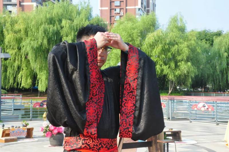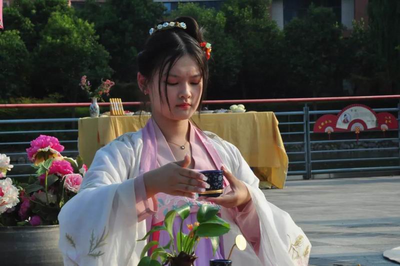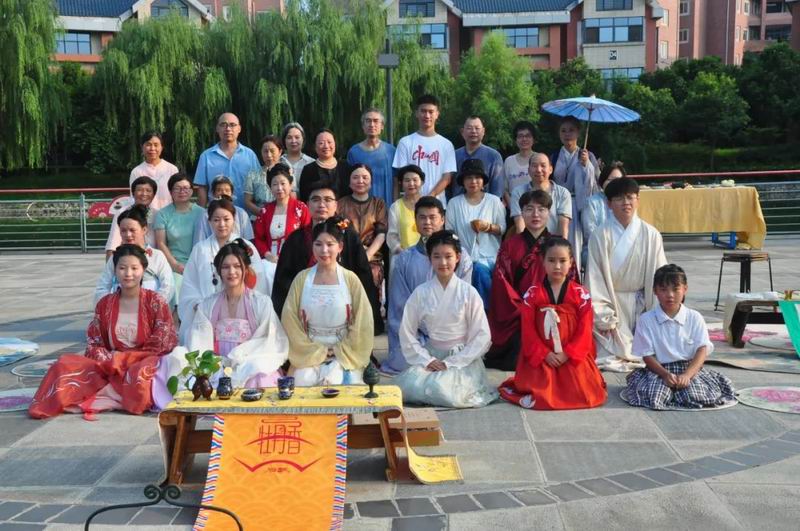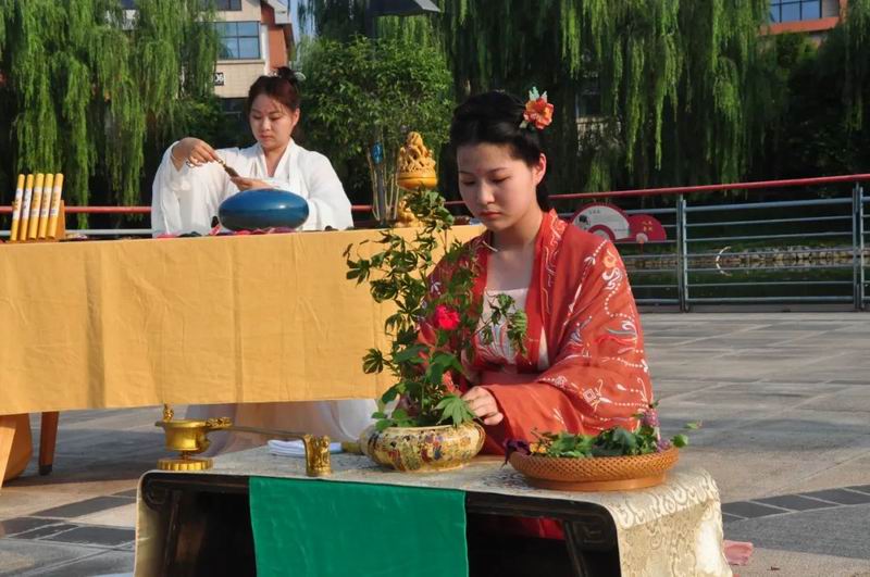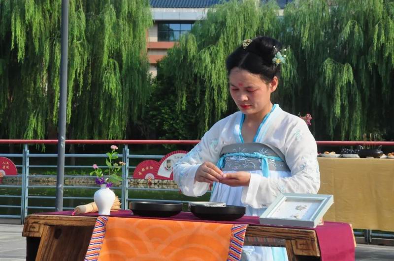 祭拜儀式結(jié)束后,傳統(tǒng)文化愛(ài)好者在古樸深沉、韻味悠長(zhǎng)的古琴演奏中展示了制香、茶藝、古法造紙、香染等非遺文化和傳統(tǒng)技藝。