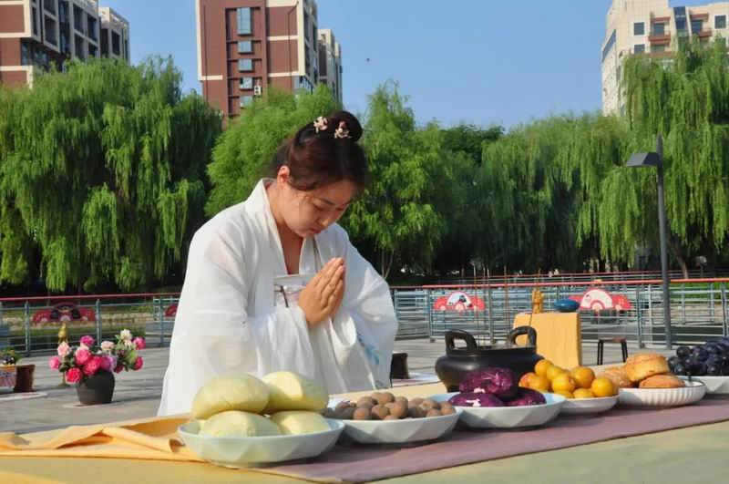 下午17時(shí),活動(dòng)正式開(kāi)始。伴隨著悠揚(yáng)的樂(lè)聲,祭拜儀式拉開(kāi)序幕。